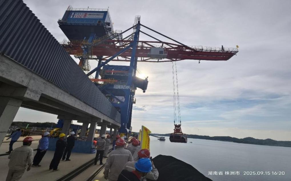 湘江之畔,華新機電大唐華銀株洲項目抓斗橋式卸船機近日完成首船接卸。這標(biāo)志著湖南省“十四五”重大能源工程的關(guān)鍵配套項目——大唐華銀株洲退城進郊2×100萬千瓦擴能升級改造項目燃料供應(yīng)保障的關(guān)鍵環(huán)節(jié)已經(jīng)打通,項目進度取得重大進展,為電廠后續(xù)投產(chǎn)與高效運營奠定了堅實的基石。